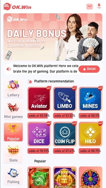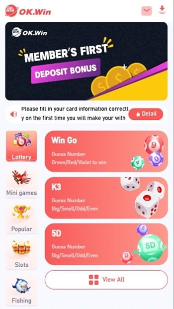 OK Win is a versatile mobile gaming platform that offers users a selection of fun and entertaining games. Designed to cater to different types of players, the platform provides a seamless experience that allows users to dive right into gaming without any unnecessary complications. With a variety of genres and game types to choose from, OK Win ensures that players never run out of new experiences to explore.